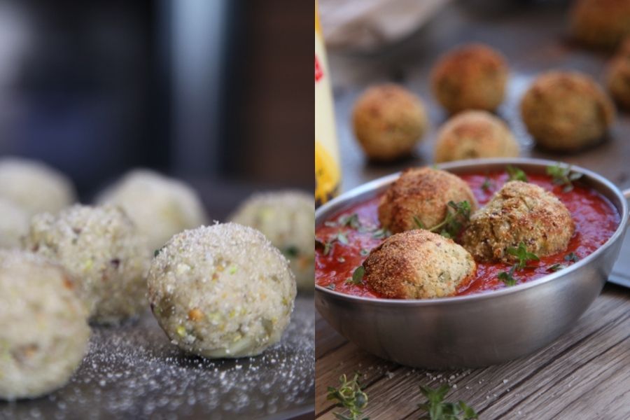 ¿El secreto para no ser descubiertos? los sabores que puedes llegar a crear para hacerles olvidar que están comiendo verduras. Por ejemplo: el ajo asado, unas frescas hojas de tomillo o los pistachos, son solo algunos de los ingredientes que completan el sabor de estas albóndigas de berenjena. Pero también puedes jugar con la mostaza, las nueces, las aceitunas…. es cuestión de probar hasta crear un plato atractivo que les atraiga y les seduzca.