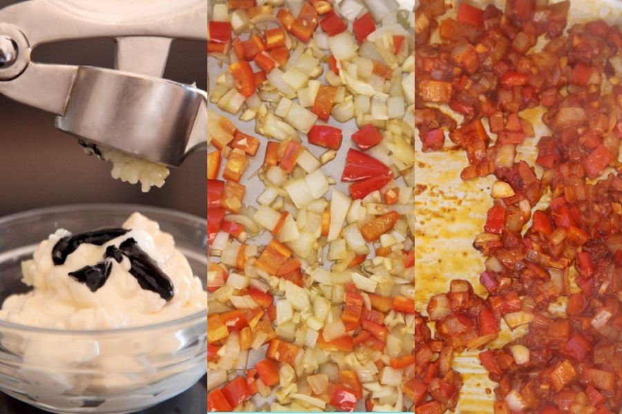 Ahora solo te queda repasar bien todos los ingredientes para asegurar que no te falta ninguno: arroz, vino blanco, calamares, tinta de calamar, cebolla, pimiento verde, ajo, tomate frito, mayonesa, perejil, sal, pimienta y aceite de oliva.
