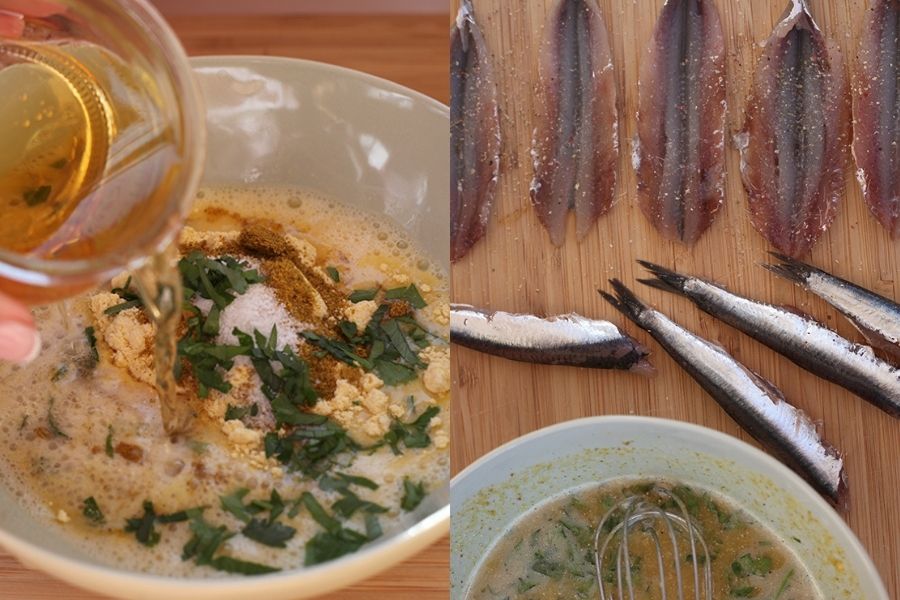 Hacerlos no tiene ninguna complicación, únicamente recuerda decir al pescadero que los limpie retirando la espina y la cabeza. Cuando llegues a casa los lavas con agua muy fría y con un paño los secas delicadamente para comenzar a bañarlos en este sabroso, crujiente y exótico rebozado.