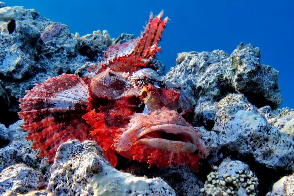 Tampoco destaca por su destreza: es más bien torpe nadando y pasa gran parte de su vida semienterrado en fondos rocosos, donde se esconde y se camufla durante el día y sale al anochecer para alimentarse de pequeños peces y crustáceos.
