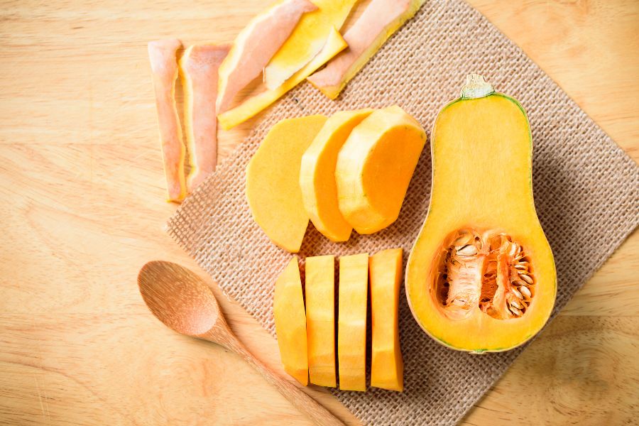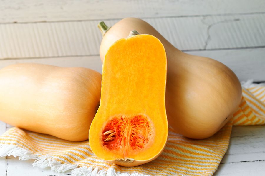 Tiene la piel muy dura y la pulpa es naranja, su sabor es un pelín más amargo y cumple muy bien su función en cremas y estofados.
