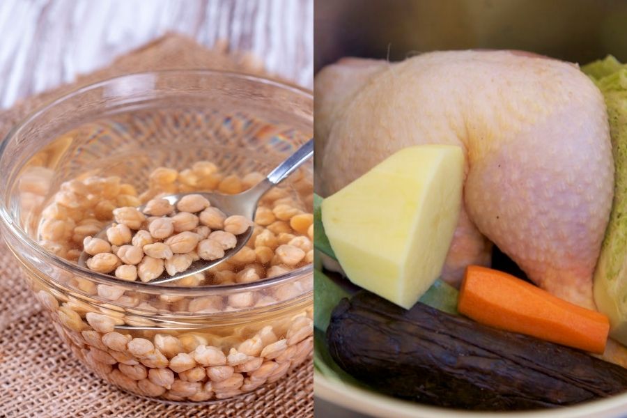 El día anterior sumerge los garbanzos en agua caliente para que comience su hidratación.