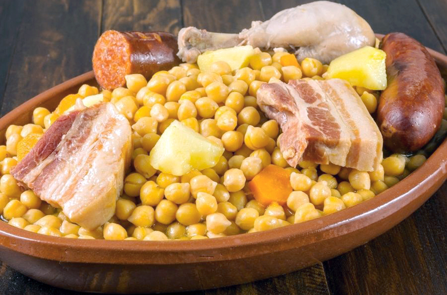 Es tradición tomarlo en tres vuelcos, es decir, servirlo en tres etapas consecutivas: primero la sopa, después los garbanzos con las verduras y en el tercer vuelco la carne. Luego hay quien lo toma todo junto y quien lo hace en dos vuelcos. Después, por si fuera poco, se hacen rellenos y salsas para completar y subir a la categoría de superior este plato tan nuestro.