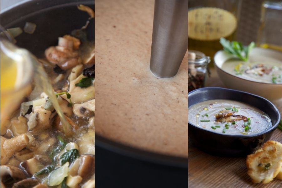 Pero si existe una manera de sacarles partido y disfrutar de ellas al cien por cien es, convertirlas en crema. Solo tienes que seleccionar tus favoritas, rehogar una cebolla, ajo, apio y hojitas de tomillo. Añadir las setas lavadas, remover durante unos minutos para que suelten todo el jugo que encierran en su interior, verter un caldo de verduras y sazonar al gusto. Como siempre, mi recomendación es que el caldo de verduras sea casero para aportar los mejores nutrientes, pero si no tienes tiempo, puedes comprar alguna marca de calidad para asegurarte un saludable resultado.