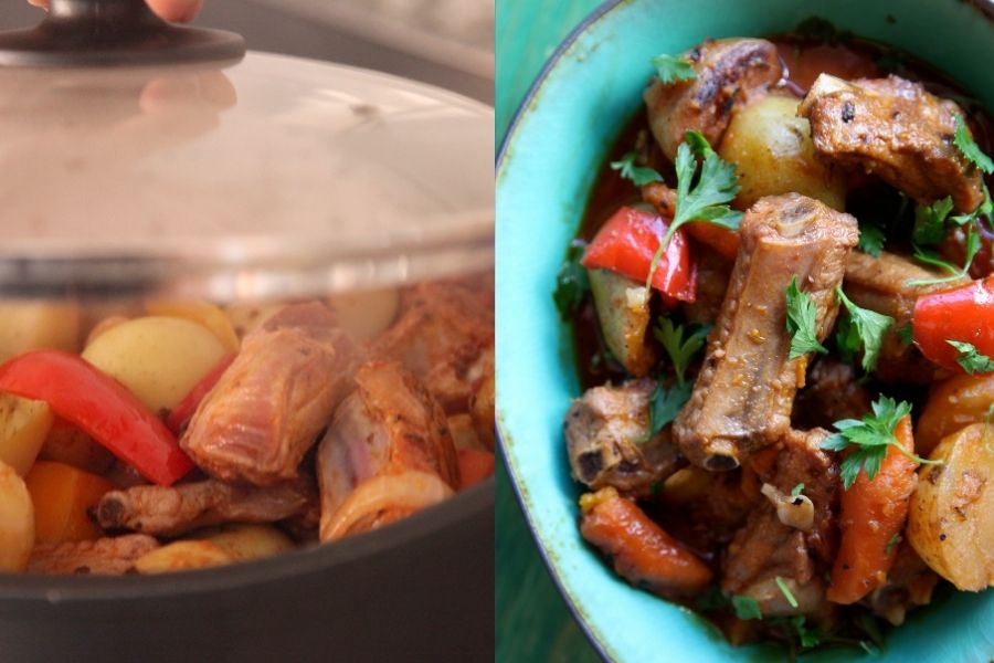 Después, basta con seguir este sencillo paso a paso para tener en tu mesa uno de los platos más extraordinarios del invierno. Mi consejo es que evites utilizar una olla rápida, aunque en caso de tener mucha prisa siempre podrás hacer uso de ella. Eso sí, has de saber que el resultado de hacerlo de una manera u otra se verá reflejado en la calidad de la salsa, ya que cocinando en cazuela lentamente como lo hacían nuestra abuelas se obtiene una salsa más espesa y suave, debido a que las patatas rompen paulatinamente estofándose con las costillas y fusionando todos sus deliciosos sabores.
