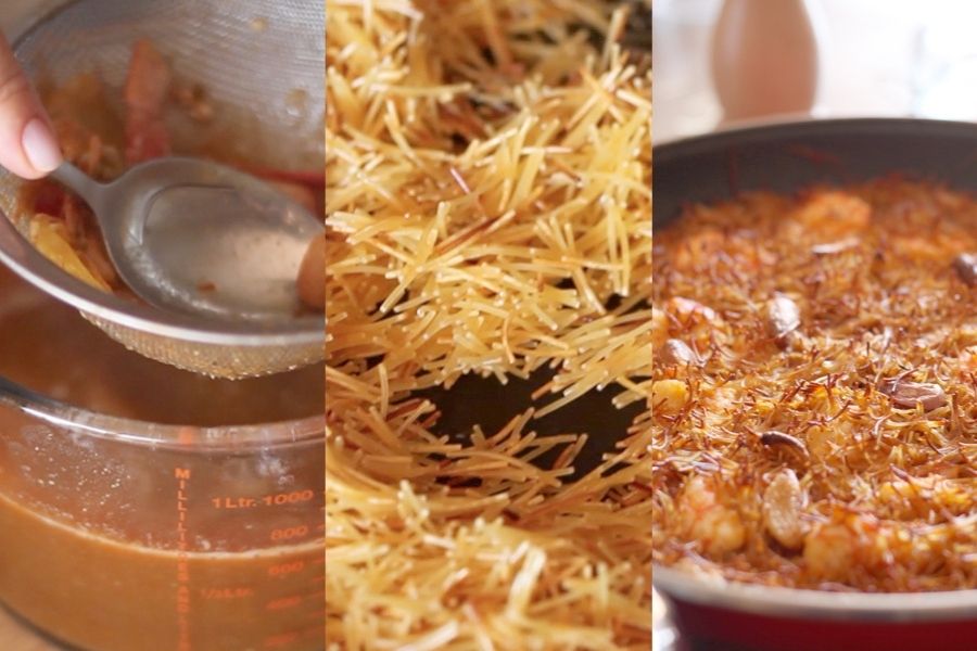En esta ocasión he preferido elaborarlo, ya sabes que abogo más por todo lo casero. Además puedes hacer un poquito más de cantidad para después congelarlo, y así siempre tendrás listo un delicioso caldo con sabor a marisco que te puede servir para cocinar unas croquetas de gambas o una sopita de pescado. Así que, si andas bien de tiempo no dudes en ponerle unos minutitos más a esta fideuá express.