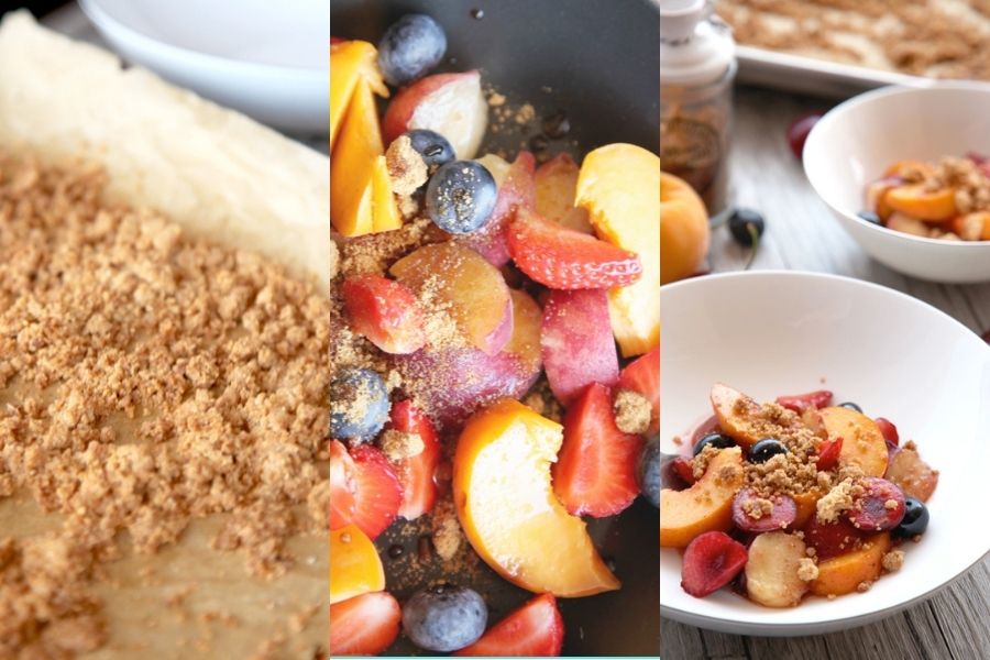 Si algo apetece en estos días de calor es comer fruta fresca y el verano nos trae toda una variedad de jugosas, dulces, refrescantes y vitamínicas frutas con las que podemos hacer fabulosos y riquísimos postres en pocos minutos. Frutas de verano con crumble de almendra.