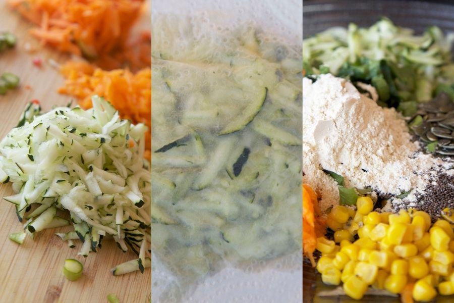 Puedes versionar esta receta y seleccionar tus verduras favoritas, solo has de tener en cuenta que si las eliges con un alto contenido en agua, deberás retirar el exceso de humedad con papel absorbente después de rallarlas, para que cuando formes las hamburguesas éstas no se rompan. Si esto sucediera, se podría solucionar poniendo más harina, pero si te excedes con este ingrediente te quedarán más duras y mucho, muchísimo menos jugosas.