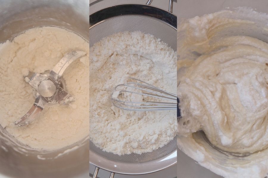 Incorpora a un robot de cocina la almendra molida con el azúcar glass y pulveriza con cuatro golpes secos y cortos a máxima potencia. Después de cada golpe remueve la mezcla para evitar que se formen grumos.