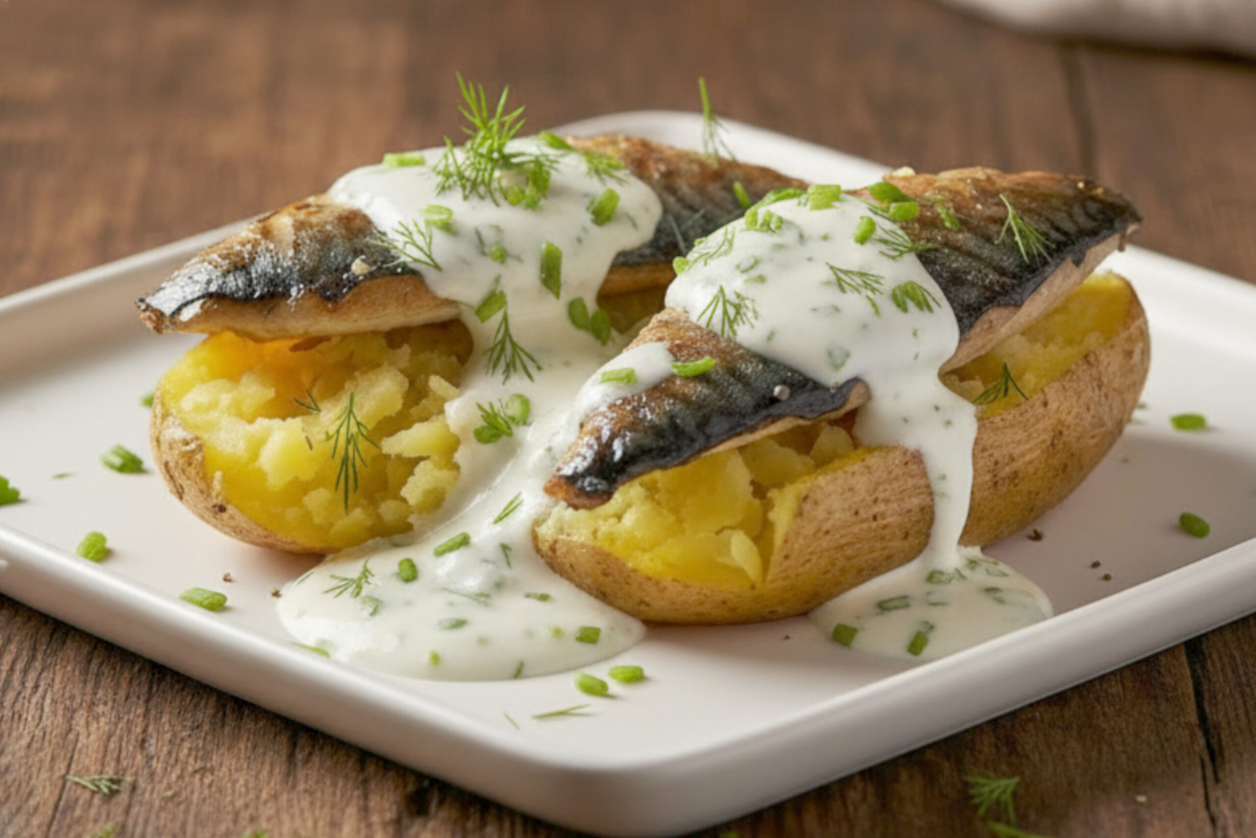 ¿Has probado esta receta de Patatas al horno con caballa y crema de yogur?