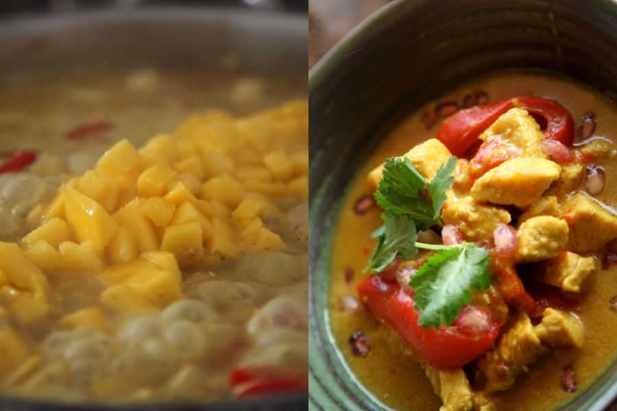 Esta receta de pavo a la crema de coco y curry rojo con crujientes granos de granada va a regalarte un momento realmente grandioso. Es de esos platos que cuando los presentas en la mesa, todos te miran en señal de rotunda aprobación insinuando un; ‘esto, va a estar muy bueno’.