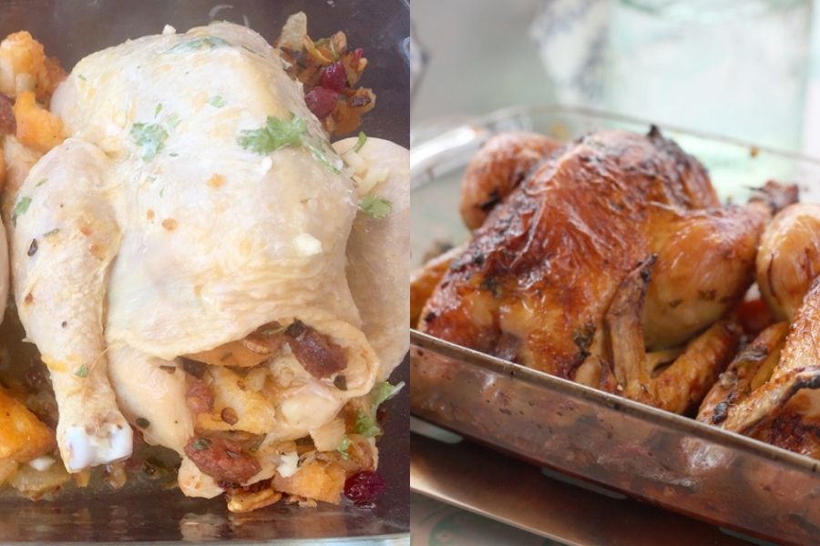 Este sabrosísimo pollo picantón relleno de pan con romero, cebolla y chorizo picante que te invito a cocinar conmigo, es una de esas recetas que deberás guardar en un buen lugar porque seguro que la vas hacer más de una vez.