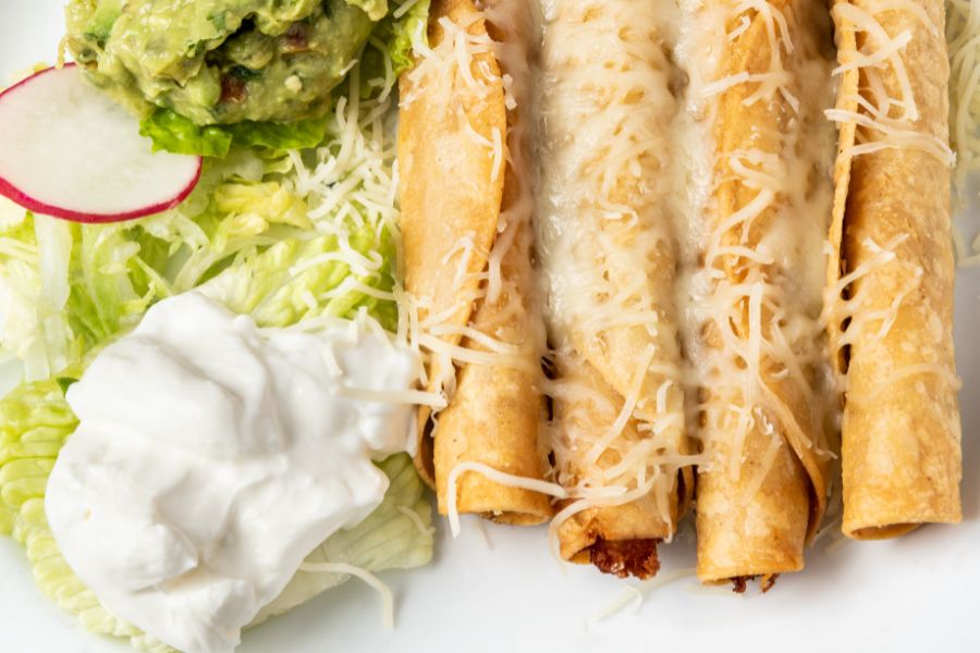 Calienta la tortilla de maíz o de trigo unos segundos para que se vuelva flexible. Extiende en el centro la carne picada, queso rallado, unos dados de tomate, y jalapeño encuritido. Enrrolla bien , rocia con un poco de aceite de oliva en spray y colocalos con la costura hacia abajo en la freidora de aire a 180º durante 8-9 minutos con un pooco de queso por encima.