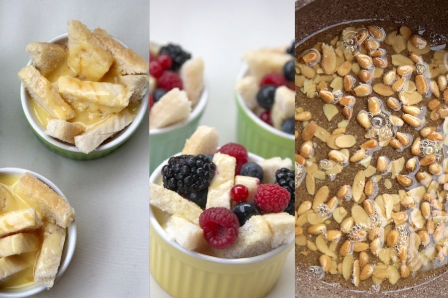 Su elaboración es simple y muy rápida, ya sabes que soy muy consciente de todo el volumen de trabajo que tenemos estos días, sobre todo de cacharros y recogidas. Por eso he querido simplificar este poste presentándolo en recipientes individuales. De esta manera, presentas este delicioso pudín de frutas silvestres en tu mesa sin necesidad de andar poniendo platos ni cortando porciones. Además, lo puedes dejar preparado por la mañana pendiente tan solo de hornear un par de horas antes de comenzar tu cena o comida, porque templadito es, como más rico está.
