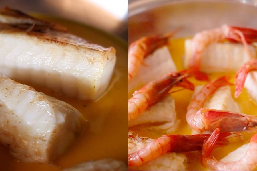En estas fechas el precio del rape y las gambas suelen tener un precio mas elevado, pero siempre puedes utilizar colas de rape y gambas congeladas.
