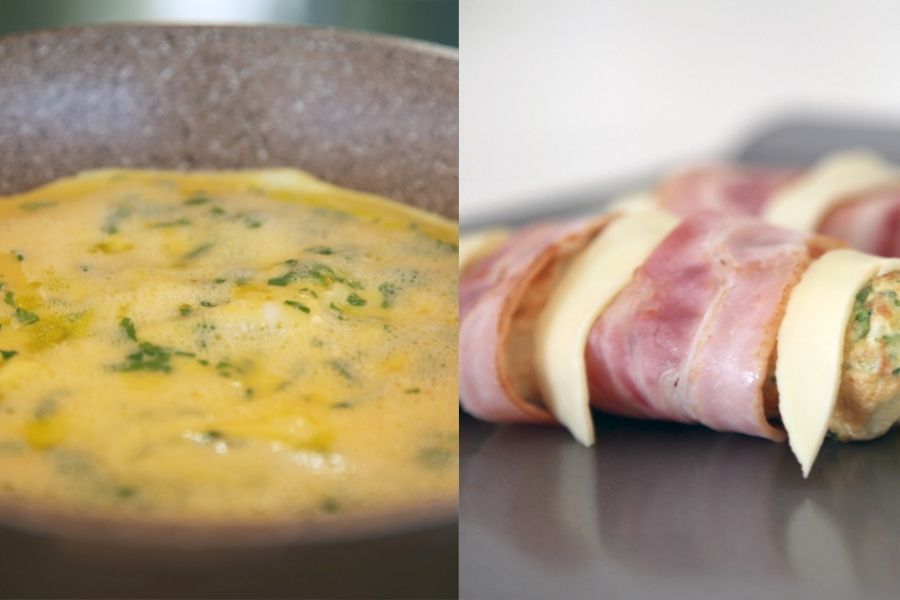 Un ejemplo claro para esos momentos críticos de los que te hablo es este delicioso rollito de tortilla envuelto en beicon desgrasado y queso fresco. Es jugoso, sabroso, muy fácil y sobre todo, rápido de hacer. Además, a los niños les encanta, y esto siempre es un buen motivo para prepararlos. Como siempre, ya sabes que puedes cambiar ingredientes para tener así más alternativas a la hora de cocinarlos. Algunas ideas pueden ser; sustituir el beicon y queso por salmón ahumado, o un poco de foie, o enrollar la tortilla con una buena cantidad de espinacas y queso gorgonzola.