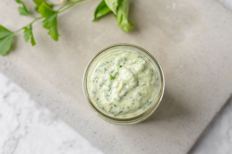 Si quieres mejorar tu recetario de salsas debes anotarte la salsa de diosa verde y subirla directamente a los primeros puestos. Una salsa inspirada en los profundos sabores de las hierbas frescas que lleva como escolta una buena mayonesa casera, un punto ácido de limón, un poco de tahini con sus suaves matices de nuez tostada y el sutil punto picante de un poco de ajo.