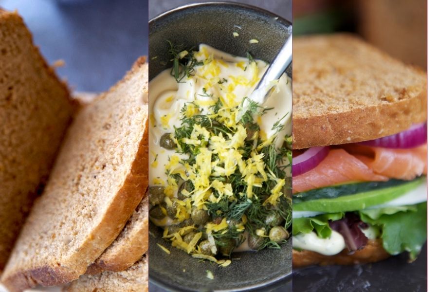 Sándwich de salmón y crema de eneldo.