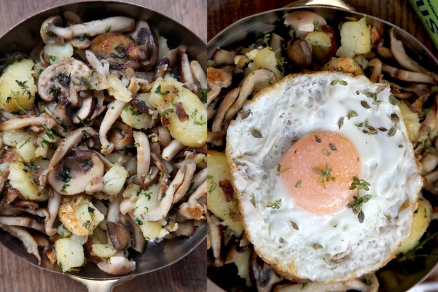 Preparar esta sartén de setas, patatas, foie y huevo es todo un manjar a parte de rápido. Y ahora, que estamos en días de comer mucho, puedes ahorrar alguna caloría cociendo primero las patatas para después rehogarlas con los deliciosos sabores de la cebolleta, los ajos, las setas y el toque personal del foie.