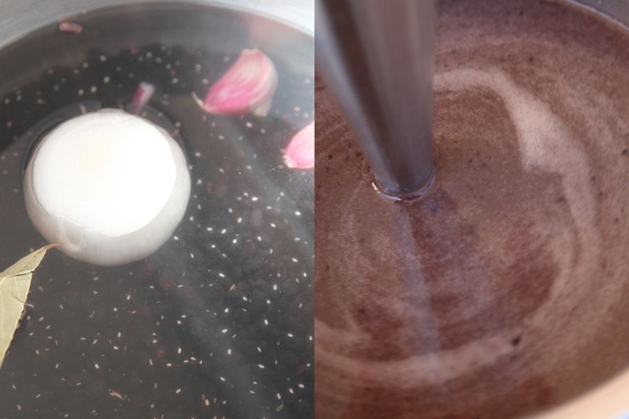 Su elaboración es muy básica. Primero hay que cocer los frijoles con cebolla, ajo y laurel, una vez tiernos los trituraras con una batidora de brazo hasta conseguir una sopa con cuerpo, muy ligera. Después, solo te quedará presentarla con unos divertidos y coloridos toppings de :
