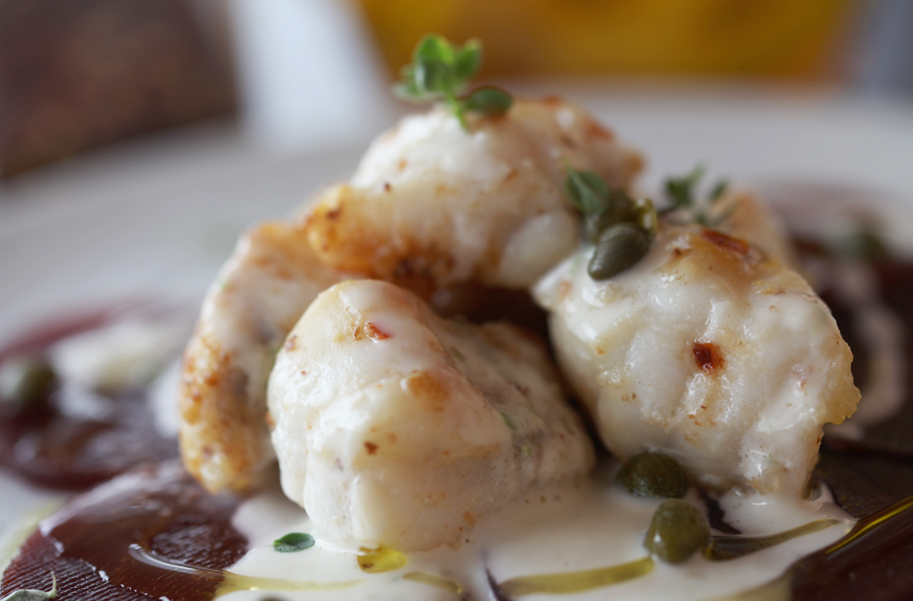 En NocheBuena, rape en salsa de azafrán con carpaccio de gambas