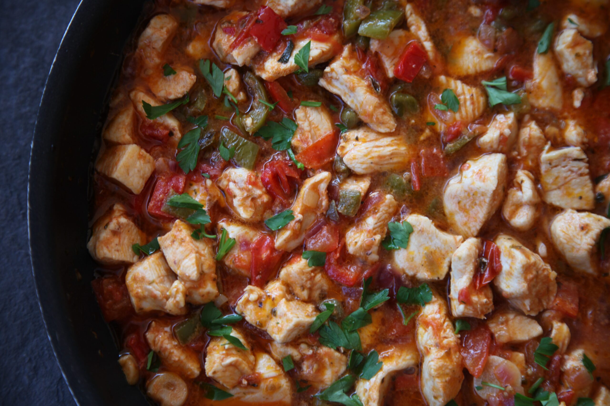Si eres de los que opina que la carne de pavo puede resultar seca e insulsa, puedes utilizar contramuslos de pollo. Aunque te adelanto que si le das el tiempo justo en la sartén y lo cocinas con ingredientes que arropen e impregnen de sabor su carne, cambiaras rápidamente de opinión y la pechuga de pavo será tu nueva amiga.