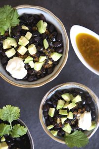 Presenta tus frijoles negros calientes con aguacate, cilantro, crema de nata y tu aromática e intensa salsa chimichurri.