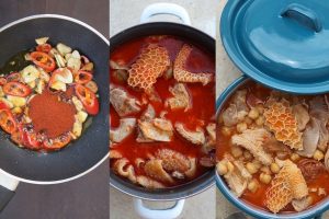 Cuando estén listos los garbanzos añádelos a la cazuela donde tienes los callos, cubre ligeramente con una tapadera y mantén a fuego medio 20 minutos más para fusionar e intensificar sabores.
