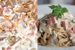 En un plato hondo coloca los spaghetti y esparce la salsa cremosa de setas por encima
