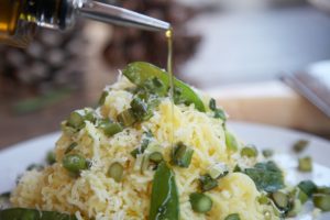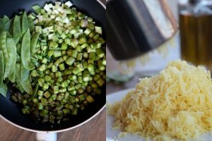 Distribuye las verduras, ralla un poco del aromático e intenso queso pecorino, deja caer un hilo de aceite de oliva virgen extra y termina con unas chispas de sal.