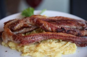 Lágrimas de cerdo ibérico con puré de apio y patata
