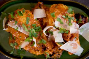 Presenta con una lascas de parmesano y una generosa lluvia de perejil fresco