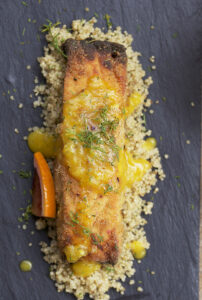 Sírvelo en tu mesa sobre una cama de mijo, vierte por encima la deliciosa salsa de cítricos y eneldo recién cortado.