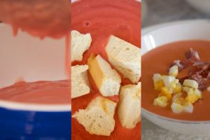 Seguido vuelve a introducir todo en el vaso batidor y tritura de nuevo incorporando lentamente el aceite por la boca de entrada de los alimentos. Sazona al gusto y por último añade el vinagre. Verás que en este paso su tonalidad cambia a un intenso color naranja.