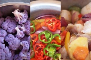En el último minuto sumerge las espinacas lavadas y el segundo pimiento rojo con la lima cortada en rodajas.