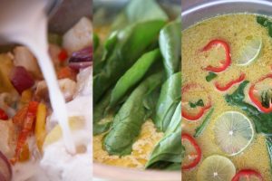 Vierte la leche de coco junto con el agua de la coliflor y cocina a fuego medio alto durante 20 minutos.