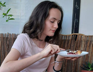 Decora la tarta con el resto de la masa que te sobró haciendo pequeñas tiras y deja caer generosamente una lluvia de crumble.Introduce de nuevo en el horno a 180º durante 20 minutos o hasta que el hojaldre dore.