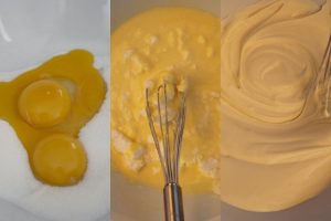 En un bol pon las yemas de los huevos, el azúcar normal y el vainillado. Para un tiramisú perfecto, lo idea es batirlo a mano, conseguirás una mejor consistencia y el punto exacto de textura.